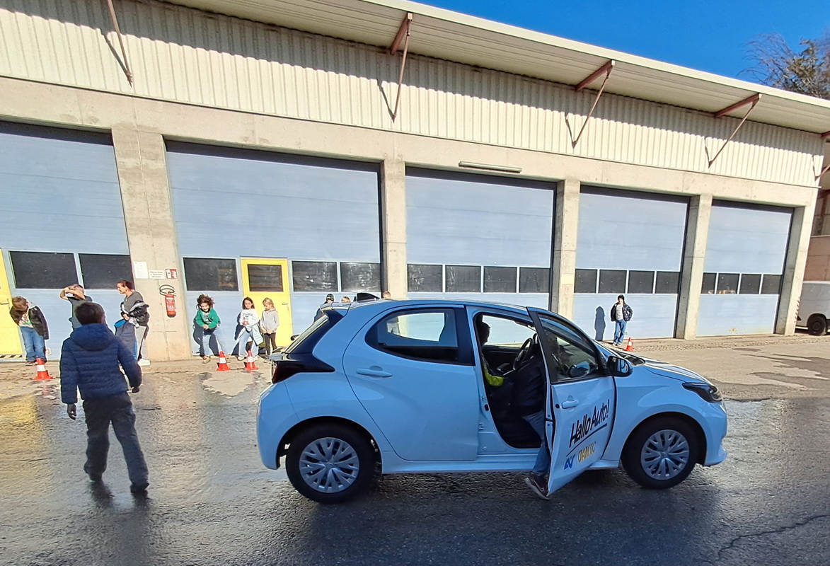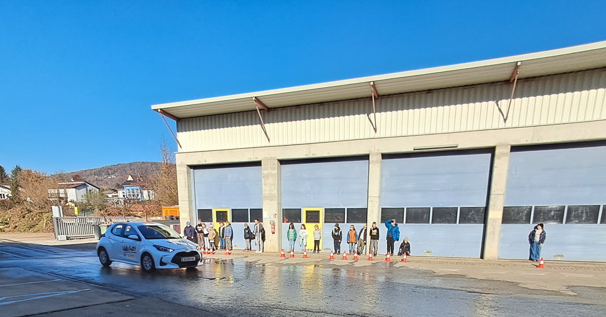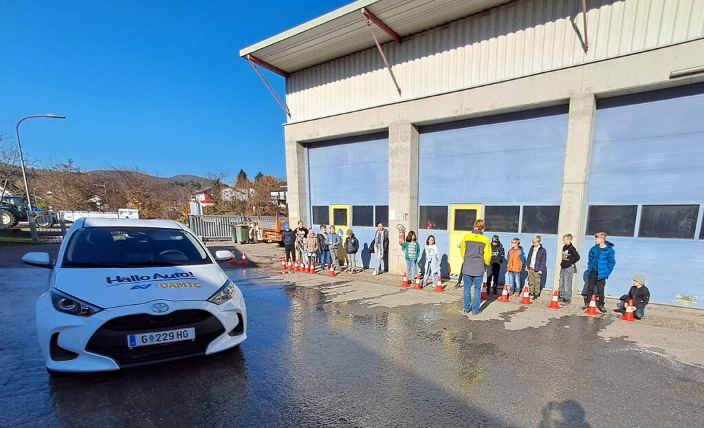 Die Kinder der 3. Klassen durften am 5. November anschaulich erleben, dass selbst eine Notbremsung das Auto nicht sofort zum Stillstand bringt und dass sich der Anhaltewege aus Reaktionsweg und Bremsweg ergibt.
